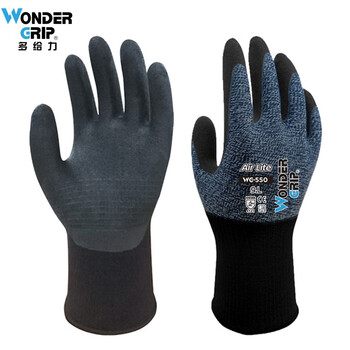 多给力(WonderGrip)WG-550丁腈浸胶手套园艺维修搬运耐磨防油灵巧单独包装定做藏青色L码6双