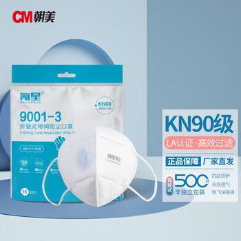 CM朝美 9001-3型 白色耳挂式【500只】带呼吸阀KN90防雾霾PM2.5防唾液飞沫颗粒物粉尘透气工业劳保民用口罩