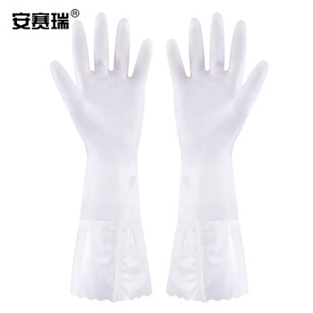 安赛瑞 加绒乳胶清洁手套 防水防油劳保橡胶 厨房清洁防护 长30cm1双装 28703