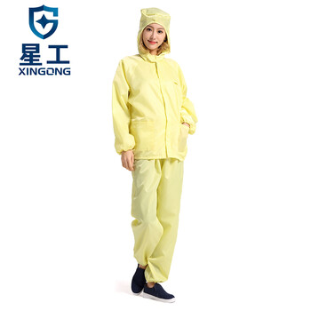 星工 分体静电服 带帽洁净服无尘服喷漆工作服可定制黄3XL码