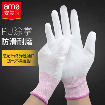 安美尚(ams) A568 PU涂掌手套 劳保手套 5包(12双/包)S码