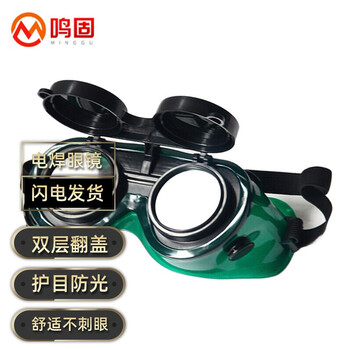 鸣固 电焊眼镜 焊工防强光翻盖氩弧焊双层玻璃双镜片护目镜