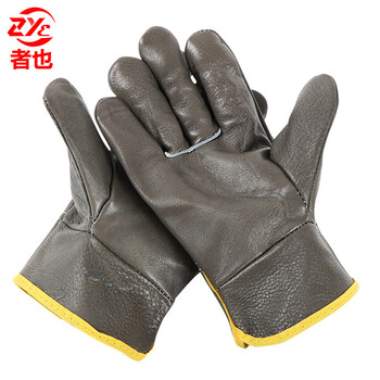者也 短款牛皮焊工电焊手套加厚牛皮搬运耐磨劳保防护手套 深色系颜色随机发 1双