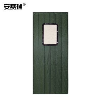 安赛瑞 保暖棉门帘 冬天加厚棉门帘(0.9×2.2m) 挡风防寒隔热隔音牛津布门帘超市门帘 带窗款 军绿色23801