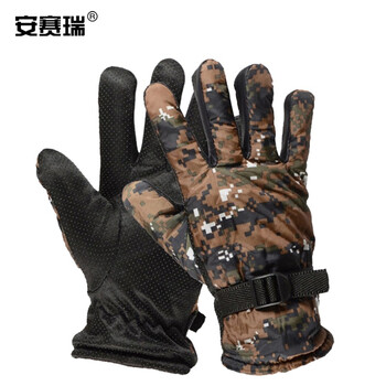安赛瑞 加绒迷彩手套 冬季防寒防滑保暖全指手套 户外加厚保暖棉手套 迷彩绿 25559