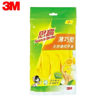 3M 思高橡胶手套 薄巧型防水防滑家务清洁 厨房洗衣小号定做 XA006502596 柠檬黄3双装