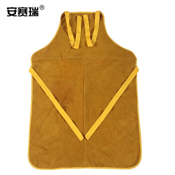 安赛瑞 牛皮电焊工作围裙 牛皮电焊围裙工作衣 电焊阻燃耐磨围裙 黄色三拼围裙 25627