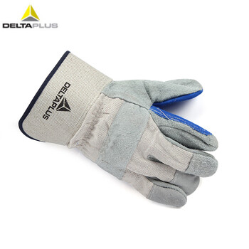 代尔塔(Deltaplus)204202 牛皮缝线手套 耐磨防穿刺帆布焊工作业 定做 10码 1双