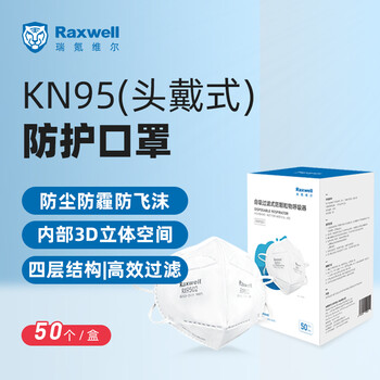Raxwell KN95口罩透气防尘防霾防飞沫 男女四层结构可折叠头戴式50只RX9502
