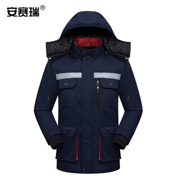 安赛瑞 冬季加厚工作棉服上衣 防寒保暖棉袄工厂车间汽车维修反光条 可拆卸内胆2XL码藏青色 25690
