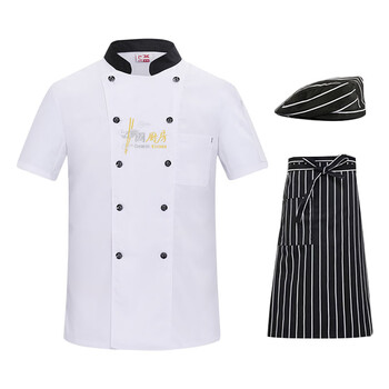 米盛厨师服 酒店食堂饭店后厨工作服男女工衣 白色短袖+围裙+帽子L码可定制绣字MS-2