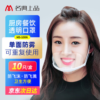 名典上品 微笑透明口罩 MS-100N 单面防雾款 10只/盒 酒店餐饮餐厅食堂卫生 厨房厨师专用