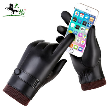 大杨093男士保暖防寒手套可触屏 黑色 罗口款 秋冬季防水防风加绒户外皮手套