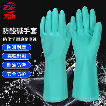 者也 耐油丁腈橡胶手套耐酸碱防化工业塑胶家务洗碗印刷劳保防护胶手套 L码 3双起订