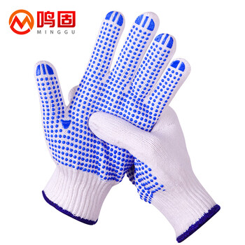 鸣固 点珠劳保手套克防滑耐磨工地搬运维修点胶12双/包