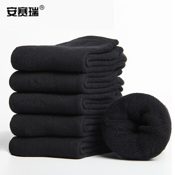 安赛瑞 冬季加厚棉袜 保暖加绒中筒毛圈袜 男士耐磨袜子劳保工作袜 5双装黑色 25630