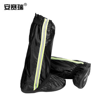安赛瑞 反光款防雨鞋套 高筒牛津布防雨鞋套 便携式防水耐磨鞋套 雨鞋套黑色XL码(40-41码) 28133