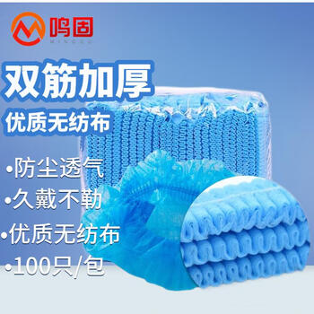 鸣固 一次性头套\防尘 无纺布帽子 厨房条形帽防尘防污帽 蓝色100只