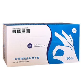 曼隆 一次性乳胶手套 多用途手套 100只/盒 (白色有粉)L码
