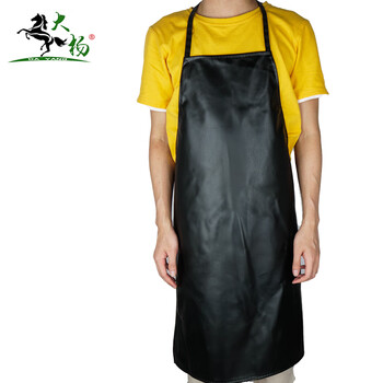 大杨216皮革围裙男女 防水防污耐脏挂脖厨房家务餐厅洗车场工厂皮罩衣 黑色 定制