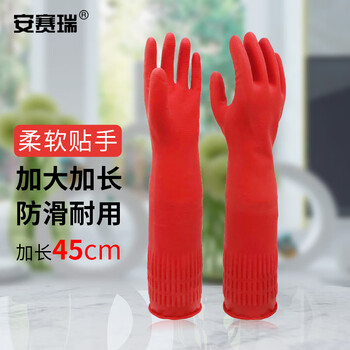安赛瑞 长款乳胶清洁手套 防水防油加长加厚劳保橡胶防护手套(长45cm) 1双装 28704