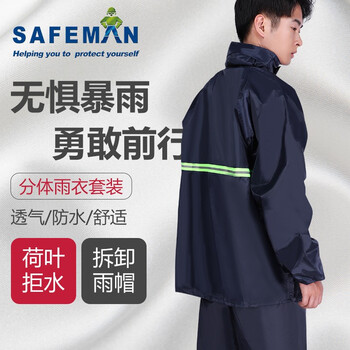 安赛瑞 分体式牛津布雨衣套装 电动车骑行反光男女款雨披 保安交通户外施工执勤雨具 藏青XXL码 12323