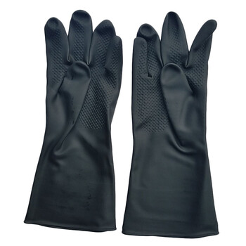 路宁一次性乳胶手套加长耐酸碱 工业 黑色 36cm码