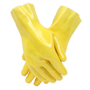 东亚 028 PVC防酸碱防化手套 耐磨耐油防腐蚀石油化工机械农药 定做 柠檬黄 5副