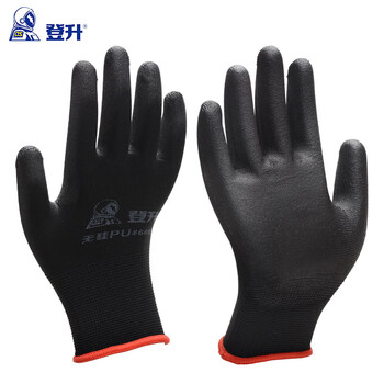 登升 #669涤纶PU半挂手套 13针涤纶掌浸PU手套 精密手套 定制 黑色 8码 12副