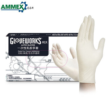 爱马斯(AMMEX)【TLFGWC】一次性乳胶手套无粉耐酸碱通用型检查手套 定做100只1盒 乳白色 M码