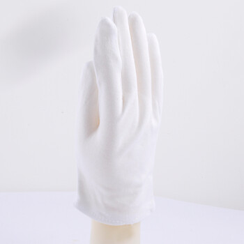 鸣固 礼仪手套 白手套 白色棉汗布劳保工厂质检手套 检阅表演手套 12付/包 常规款 4包装
