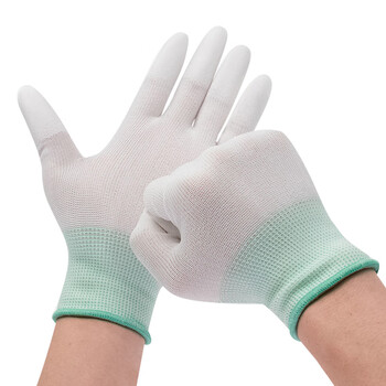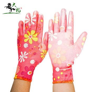 大杨555尼龙PU涂指手套 12双 M码白色男耐磨防滑工地涂层劳保手套