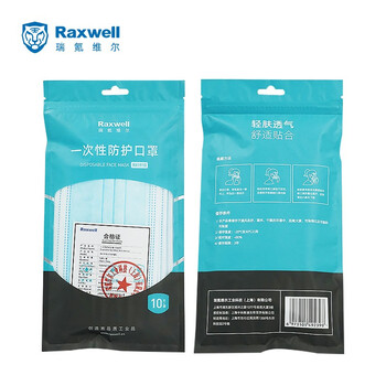 Raxwell一次性防尘口罩 三层防护 细菌过滤效率BFE≥99% 10只/袋 RX1910