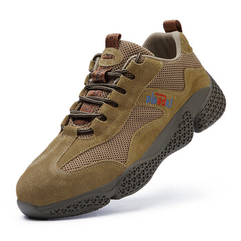 老管家 劳保鞋男钢包头防砸防刺穿舒适透气反绒皮休闲减震耐磨实心底安全工作鞋 265 棕色 43