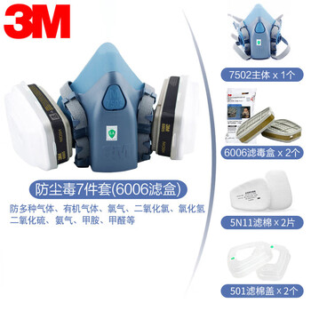 3M7502+6006CN七件套防甲醛喷漆酸性气体多功能防毒面具 中号