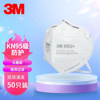 3M KN95口罩 9502+ 头戴式自吸过滤式防颗粒物呼吸器 环保装50个/包