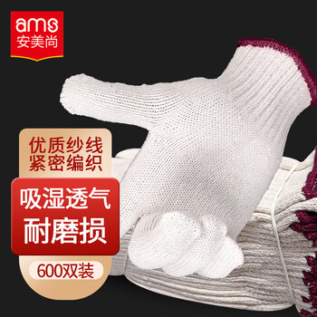 安美尚(ams) 细纱针织白线手套 劳保工作耐磨 600G本白原纱线手套 定做 600双装