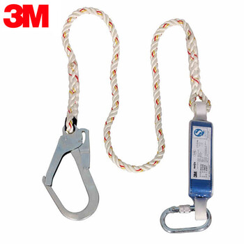 3M 1390399单钩减震缓冲连接绳配50MM大挂钩 安全绳\坠落悬挂 Φ12mm×2m 三股腈纶 1条