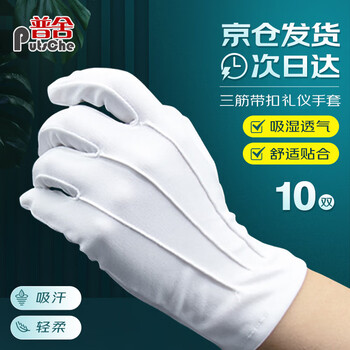普舍(PUTSCHE)白手套 珠宝表演开车 白色高品棉带扣礼仪手套10双
