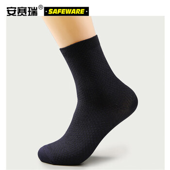 安赛瑞 竹纤维耐磨中筒袜 吸汗袜子 劳保工作袜 劳防用品 男士均码 5双装黑色 10818