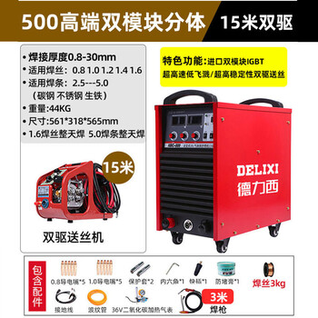 德力西二保焊机工业级气保焊NBC500分体三相380v两用电焊机500双模块分体机【30米双驱+全套配件】