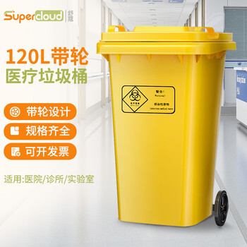 舒蔻(Supercloud) 医疗垃圾桶医院诊所实验室专用加厚废物黄色污物桶商用带盖 带轮款120L