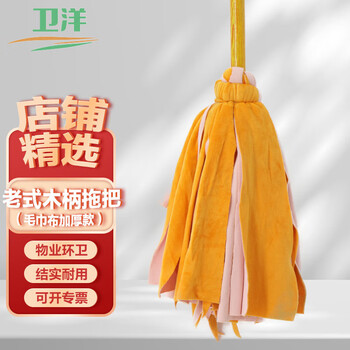 海斯迪克 gnjz-1026 老式木柄拖把 加粗加长木杆棉线拖把圆头吸水拖把 蓝白线拖把 1把