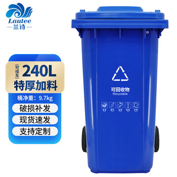 兰诗(LAUTEE)YY- 240B 户外环卫物业大号分类垃圾桶 新国标可挂车蓝色-可回收物240L