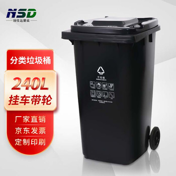 纽仕达/上海带轮分类垃圾桶240L可挂车商用户外环卫室外大号带盖翻盖大垃圾桶/干垃圾【可免费印制LOGO】