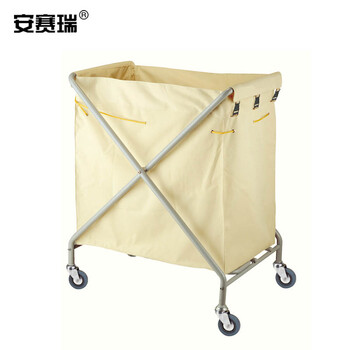 安赛瑞 布草车 不锈钢X型折叠清洁车 酒店宾馆客房手推收集车 洗衣房收纳车保洁车 24439