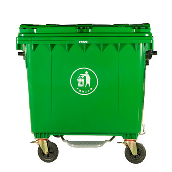 益美得 塑料环卫垃圾车户外手推移动垃圾桶大号清运车 1100L有脚踏绿色
