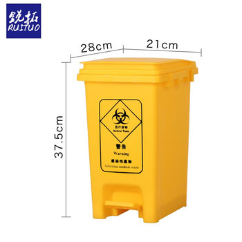 锐拓医疗废物桶加厚黄色脚踩废弃口罩回收医疗垃圾桶带盖诊所医院用垃圾桶15L医疗脚可拼接