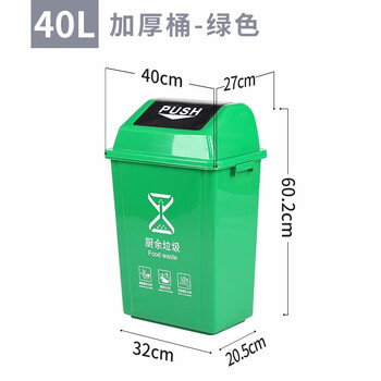 越越尚 绿色40L-厨余垃圾 摇盖垃圾桶分类厨房学校厕所户外小号容量干湿可回收有害带盖商用 YYS-XHLJT-131