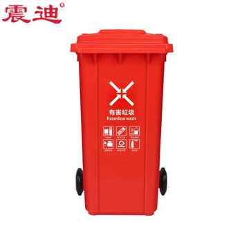 震迪 塑料垃圾桶 240L分类款(有害垃圾)挂车桶红色室外垃圾箱可定制 KT536环保分类可挂车垃圾桶